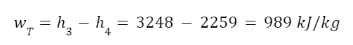 Now that we know the quality we can find the work output from the turbine. The equation for the work output of the turbine is: