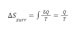 We know the surroundings have a constant temperature, so we know T. We just need the heat flow Q. We can calculate the heat flow into the surroundings by calculating the heat flow out of the system using the equation
